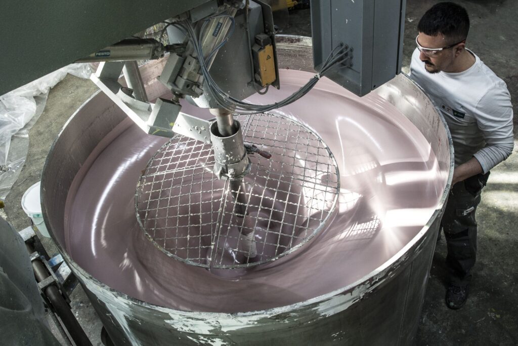 … dass du mit leistungsstarken Maschinen und modernster Technik arbeitest? Unsere Produktionsmischer mit jeweils 500 PS und 10.000 Litern Fassungsvermögen sind speziell für das effiziente und ressourcenschonende Mischen von Farben ausgelegt - Technik, die beeindruckt!
