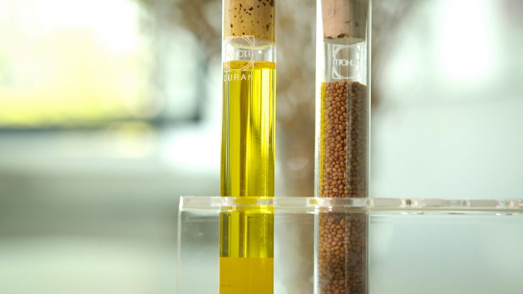 „Gemeinsam mit unseren Industriepartnern und Landwirten haben wir eine Lieferkette für ein Bindemittel geschaffen, das im Mischfruchtanbau aus Leindotter und Erbsen gewonnen wird – ein Rohstoff, der heute unsere nachhaltigen Holzveredelungsprodukte bereichert und gleichzeitig Vorteile für das Thema Biodiversität bringt.